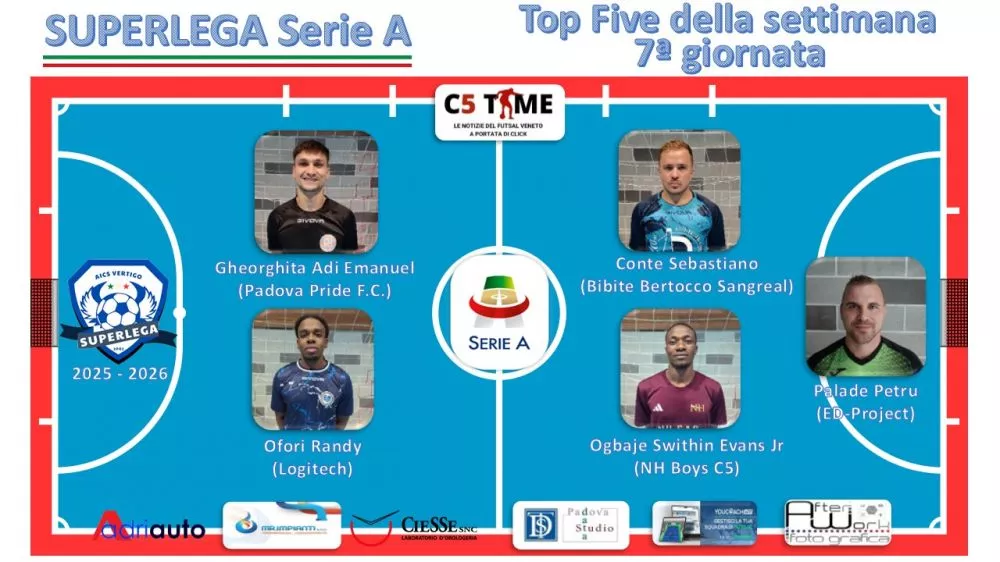 ELETTRO SERVICE, 4 a 5 contro PADOVA PRIDE F.C. - martedì 18: l'inattesa sconfitta è il vero colpo di giornata! Non bastano le reti di Cazan Stefan Octavian, Mariut Alexandru, Nedelcu Ionut Mâdâlin e Niculae Alin Andrei per evitare il tracollo. Il primo posto, ora a -1, sempre a portata di mano. L'attacco subisce un rallentamento, ma la sconfitta è un campanello d'allarme per le ambizioni Scudetto. PADOVA PRIDE F.C. la vittoria più rumorosa della giornata è loro! La doppietta del Top Five della della settimana Gheorghita Adi Emanuel e i gol di Caprino Amedeo, La Placa Alberto e Pengo Filippo regalano un successo che vale oro, portando la squadra a 10 punti. Un'iniezione di fiducia che li allontana definitivamente dalla zona retrocessione e li proietta in orbita playoff!