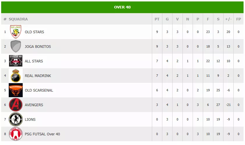 PSG FUTSAL OVER 40 - JOGA BONITOS = 2 a 9