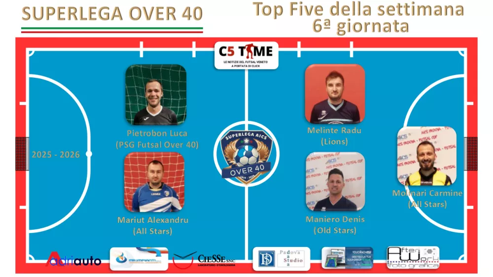 TOP FIVE della SETTIMANA della OVER 40 SUPERLEGA AICS VERTIGO