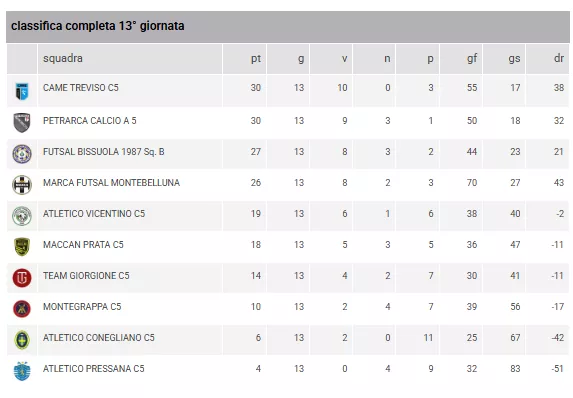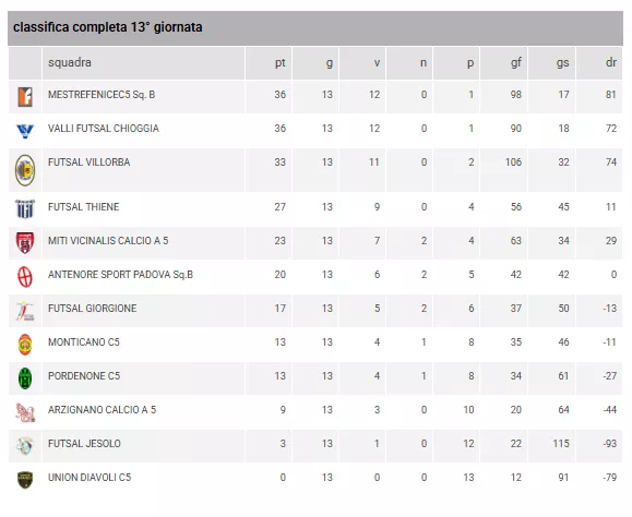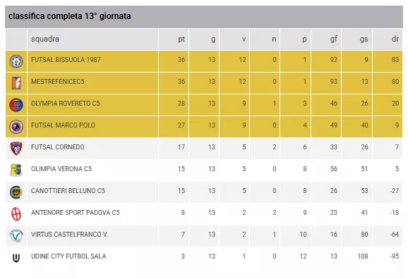 Al momento, Futsal Bissuola 1987, MestrefeniceC5, Olympia Rovereto C5 e Futsal Marco Polo occupano i quattro posti che valgono l'accesso alle Finali Regionali per il Titolo Veneto 2025/2026.