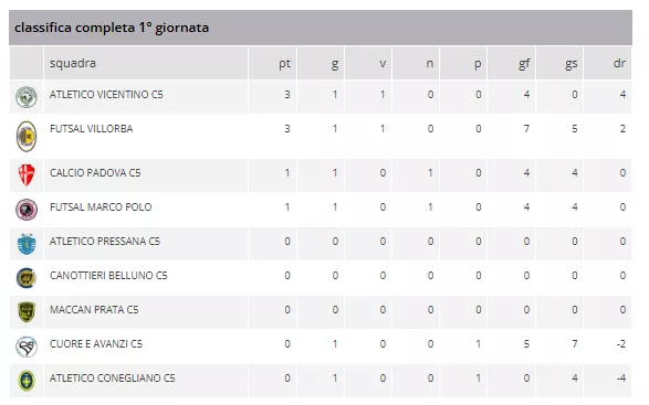 Spettacolare pareggio per 4 a 4 tra il CALCIO PADOVA C5 di mister Valso Stefano ed il FUTSAL MARCO POLO di mister Magnanini Andrea: Baran Alessio, doppietta, Manzali Thierry e Pandolfo Alvise superano l’estremo veneziano Rizzo Andrea, ma gli ospiti ribattono con le reti di Baschiera Davide e la doppietta di Bernardi Matteo e un’autogol superando Verardo Andrea e riportando in parità la gara.