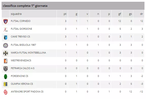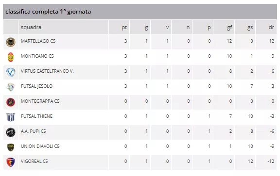 MARTELLAGO C5 - VIGOREAL C5 = 12 a 0 (5 a 0)
