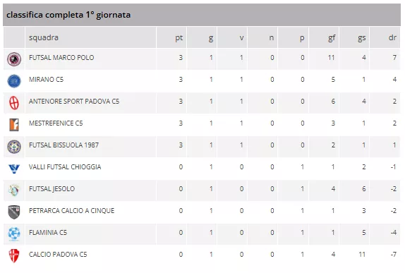 Nella prima giornata vincono FUTSAL MARCO POLO, ANTENORE SPORT PADOVA C5, MIRANO C5, MESTREFENICE C5 e FUTSAL BISSUOLA 1987, tante però le partite combattute ed equilibrate.