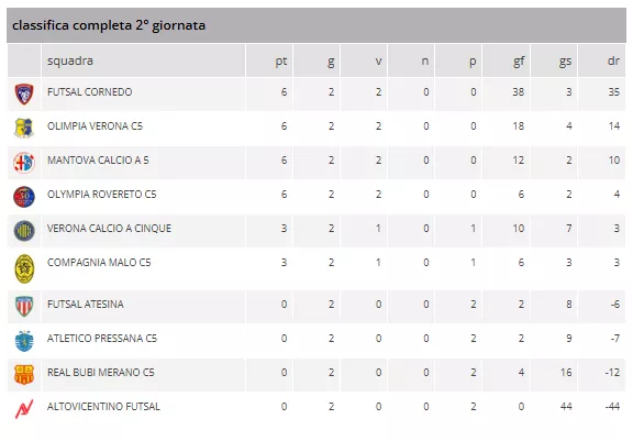 Si è conclusa la 2ª giornata del Girone C e la vetta della classifica si colora di un poker interregionale di squadre a punteggio pieno, con il FUTSAL CORNEDO che si prende la copertina non solo per i 6 punti, ma per un'impressionante differenza reti ma, braccetto con OLIMPIA VERONA C5, MANTOVA CALCIO A 5 e OLYMPIA ROVERETO C5. Le sfide di domenica 19 ottobre 2025, tutte disputate alle ore 11:00, hanno regalato emozioni forti, goleade e conferme, disegnando un primo, chiaro, scenario in testa e in coda alla classifica.